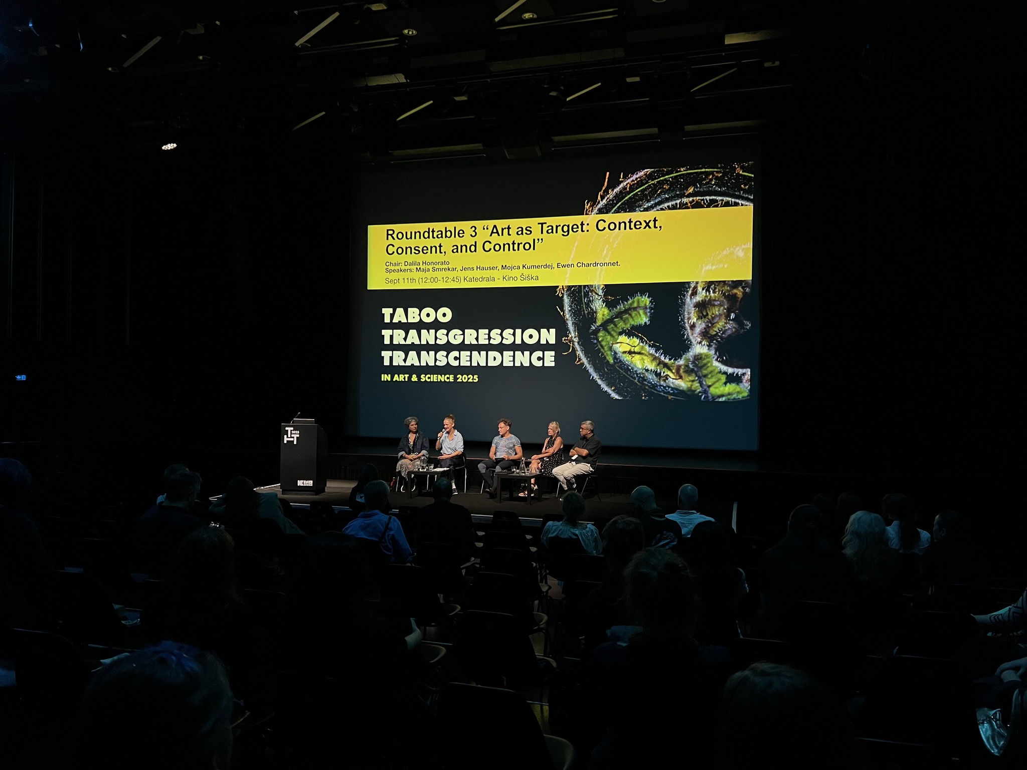 La conférence internationale Taboo-Transgression-Transcendence (TTT) in Art & Science a tenu sa 6e édition au Kino Šiška à Ljubljana, en Slovénie, du 9 au 13 septembre. Organisé depuis 10 ans par le département des arts audiovisuels de l’université ionienne (Corfou, Grèce), cet événement fait également partie du réseau Feral Labs et du programme de coopération Rewilding Cultures, cofinancé par l’Union européenne. Chrysa Chouliara, chroniqueuse en résidence pour le programme Rewilding Cultures de Makery pendant l’été 2025, partage ses impressions sur cet événement provocateur.
