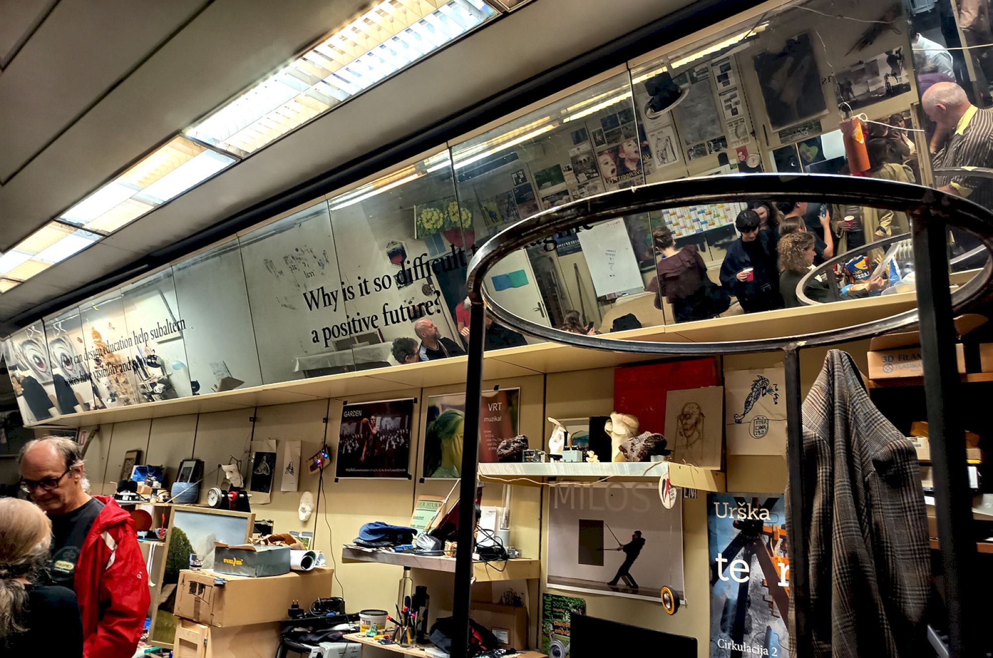 Dans le même bâtiment, il y a de nombreux ateliers. Parmi eux se trouve celui de l’un de mes artistes préférés, VTOL / Dmitry Morozov, dont j’admire les sculptures cinétiques depuis des années. Visiter son atelier, un peu par hasard, m’a donné l’impression de découvrir un autre œuf de Pâques de TTT. Quelque chose qui me console à peine d’avoir manqué la conférence de Maja Smrekar sur ses soucis avec l’extrême-droite slovène (à ce sujet vous pouvez contribuer au fond de soutien Art Kinship, une plateforme soutenue par Makery, ndlr).