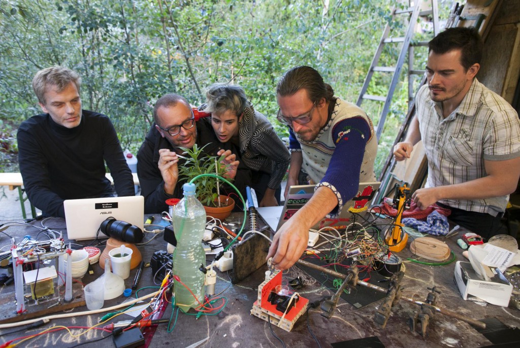 The story of Hackteria came at a time of my career where I could bring two of my passions together. First, I was originally trained as a researcher in material science and nanotechnology. I got a PhD in biointerface science bio, which is about bridging technical and engineered systems with living environments, such as growing tissue cells on artificial surfaces. And that was for me a very interesting path to go, originally trained as an engineer, into that blurry interface between death and life. And if you work in experimental research, you have to build most of your research devices yourself. All my experimental research set-ups were more or less handmade. I left research in 2006 and got really active in a local community of DIY enthusiasts dreaming of starting our own hackerspace in Zurich, and I was already very interested in open source culture. Already during my research years I followed the open access movement, access to scientific publications, joining a lot of the discussions happening in Zurich. Through that I got involved in a new world of grassroots communities, as well as the Do-It-Yourself electronic scene, as I always played music and was interested in experimental/noise electronic music.