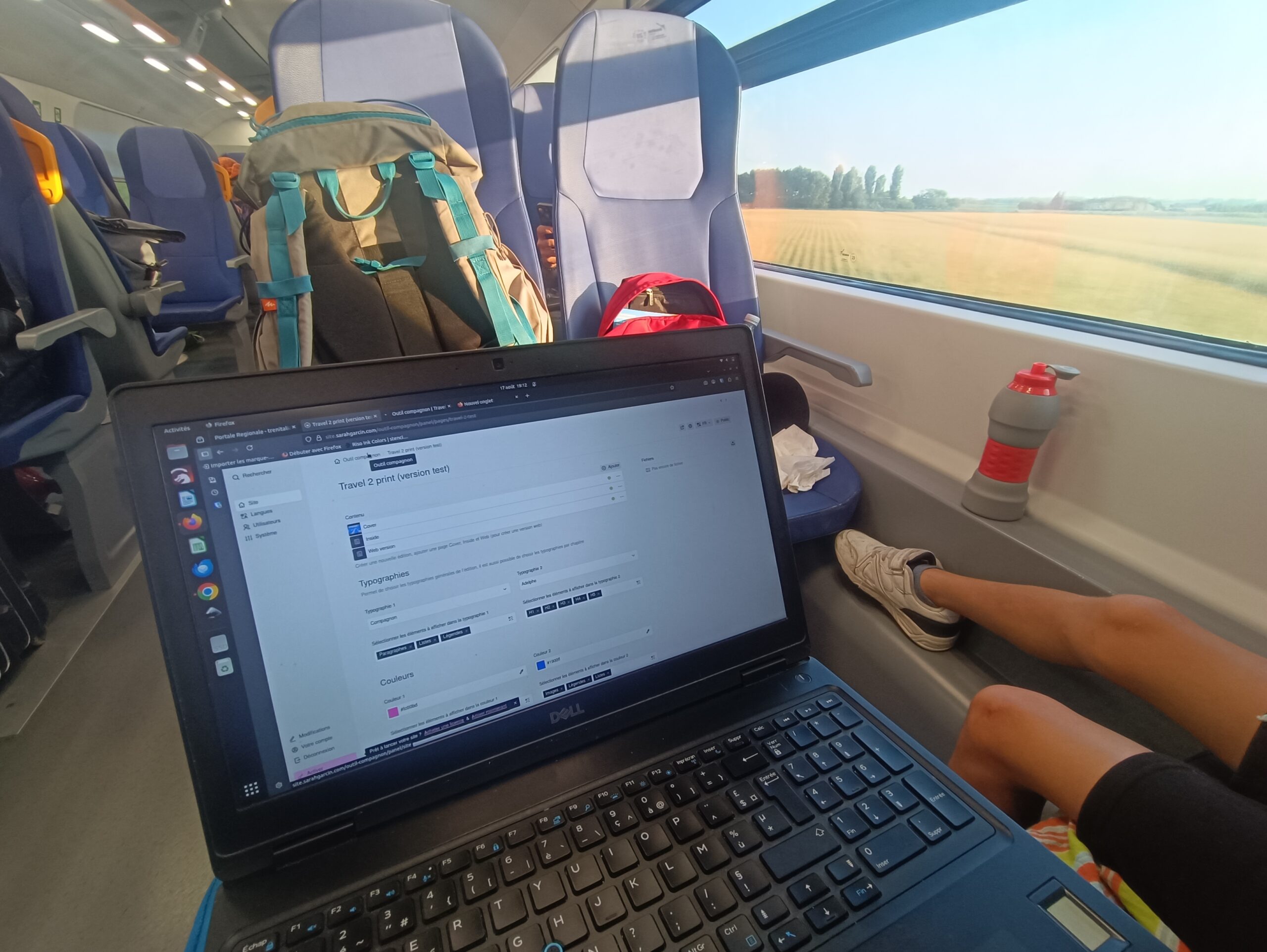 « Allo Sarah? ». Nous avions déjà collaboré dans le passé, nous reprenons le fil de nos projets, je lui partage alors cette envie/idée de compagnonner avec un outil de publication (pouvoir faire de l’édition et de la mise en récit de contenus « tout terrain », in situ ou en train). Un mois plus tard nous nous retrouvons à La générale à Paris en juillet pour une session de travail, prête à tester un « outil-compagnon » pour le voyage qui approche.