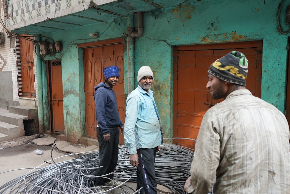 The daughter in law is laughing. The three women spend their entire day in the around eight square meter living room, working side by side. A small wood fire warms the wires to a certain temperature to make the plastic softer. It is the cold season in New Delhi, so sitting next to this fireplace seems cosy. I wonder how cosy it is in the hot season though, when New Delhi reaches up to 40 degrees Celsius? Maybe then the wires are softened on the metal roofs? At the end of the day the shiny pile of 10 kilos of copper, fruit of many hours of labor, will get traded against 150 Indian rupees, around 0,15 € per kilo. This is not much, and therefore their community lives on the bare minimum. Their two-story houses were built on land that is strictly speaking not theirs. Like in most illegal slums the streets are so narrow that I almost rub against both walls left and right while passing through. There are cute little kids playing peacefully in groups of three to ten children, I see dogs and other animals, little shops like a small barber shop, I smell food being cooked for lunch. It is a densely populated area. The sanitary conditions are bad, not enough toilets. Often people cannot wash their hands before eating because they lack water. This means that the toxics on their hands enter their body, one of many physical hazards the workers are exposed to. Lead poisoning, polluting chemicals and harmful urban wastewater pose risks to vulnerable populations like pregnant people and children (see Toxics Link Dispatch Vol. 3, Sept. 2025).