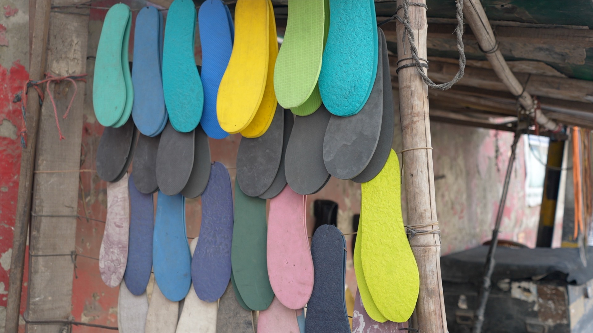 Vinod is an allrounder: in the last twenty years an expert for all kind of urban mined and upcycled materials, for health and safety systems. He explains to me that the plastic around electric wires contains PVC. Until recently the toxic plastic around copper wire was burnt to win the copper. Burning the wires was releasing extremely harmful fumes. There is a regulation now demanding that the PVC plastic wires are stripped to separate the valuable metals from plastic. Fire is only used to soften the plastic, not burn it, because it is precious. Today this plastic is as well sold, grinded into pellets and reused. “Up to five times it will be upcycled” Vinod says and smiles. “And then?” I ask. “And then they make soles for shoes out of it” he answers. I’m deeply impressed by this resourcefulness. I had just bought insoles from a street vendor, now I look at them in awe. Is my shoe’s insole from plastic that has already been upcycled for the sixth time? We finally arrive at the place, where people dismantle e-waste.
